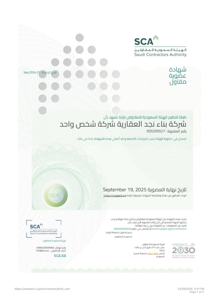 Benaa Najd Real Estate is a Saudi company specializing in real estate development and general contracting. We are dedicated to providing integrated solutions, starting from concept ideation to delivering fully completed and ready-to-use projects. With passion and professionalism, we strive to achieve the highest standards of quality and innovation, leveraging our deep expertise in the Saudi market to be a trusted partner for our clients in building the future.